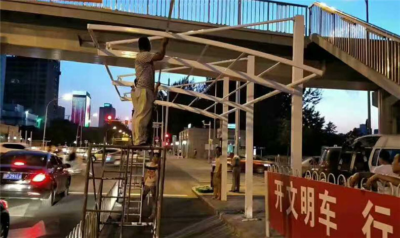 江西吉泰路公交站臺雨棚施工中